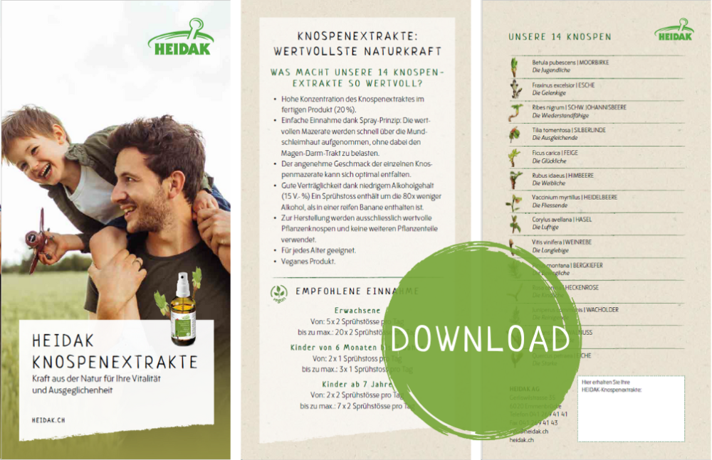Unser Flyer zu HEIDAK Knospenextrakte als Download